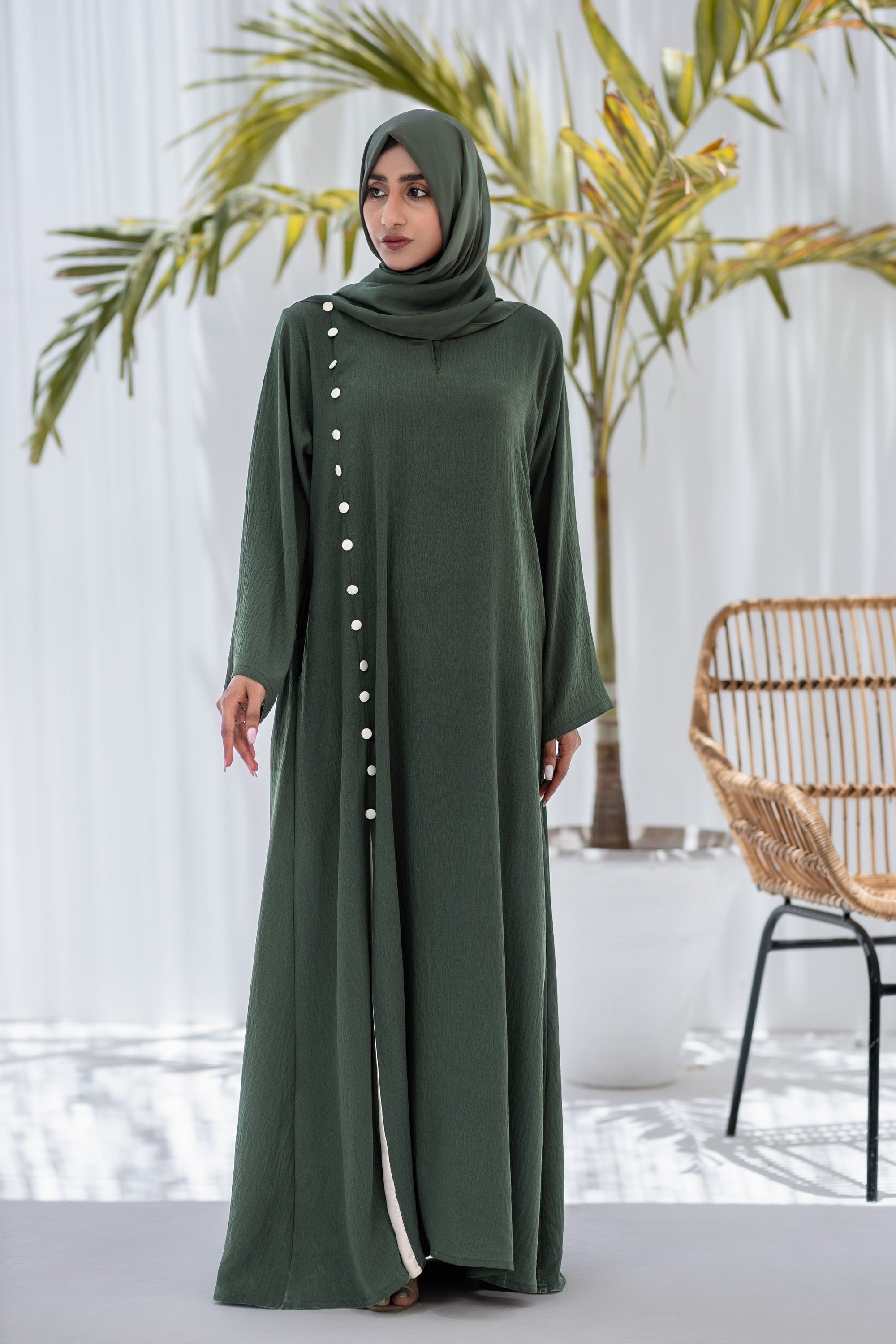 - Green Color: A rich and elegant shade that enhances the regal appeal of this abaya.