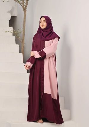 Product Description:Â Purple majesty and pale pink abaya, A stylish contrast of colors makes this piece of abaya look elegant and stylish.