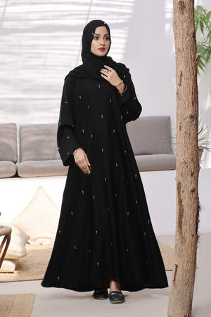 Make a statement with this beautifully designed black maxi abaya, perfect for adding a touch of elegance to your everyday attire.