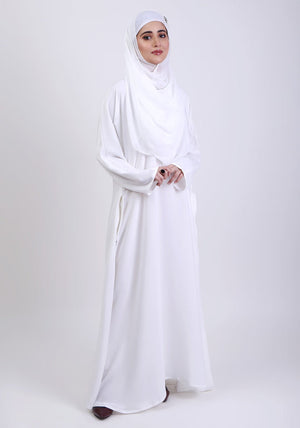 Hijabi.Pk WHITE CLASSIC FRONT-CLOSED ABAYA Hijabi