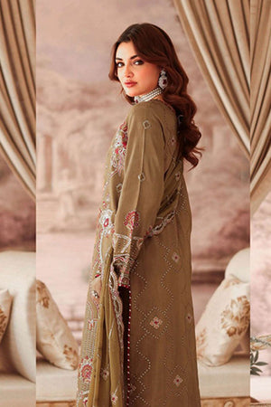 - 3 Piece Unstitched Luxury Embroidered Raw Silk Suit