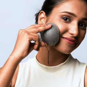 Our Bamboo Charcoal Konjac Sponge is a gentle cleansing tool made from natural konjac plant fibers and infused with bamboo charcoal.