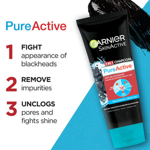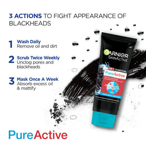 Garnier 3 In1 Pure Active Charcoal Face Wash Mask Scrub 100 Ml