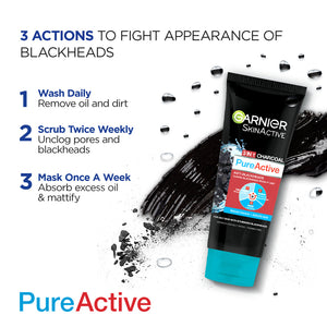 Garnier Skin Active 3-In-1 Charcoal Blackhead Face Wash Mask Scrub 100Ml