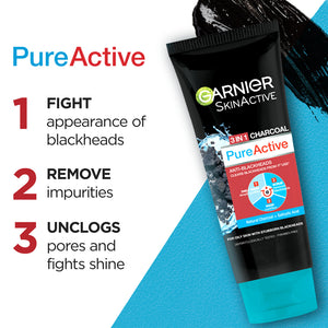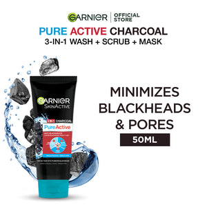 Garnier Skin Active 3-In-1 Charcoal Blackhead Face Wash Mask Scrub 50Ml