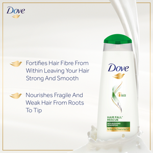 | Tired of the ever increasing strands of hair tangled and broken in your comb after brushing your hair? We know how that feels - daily hair damage can leave your hair prone to breakage. Let hair fall* be an issue of the past! Use the Hair Fall* Rescue Shampoo from Dove regularly to get thick and luscious looking hair as the Dove shampoo works to reduce hair fall by up to 98%*. We never want you to feel sad after a hair brush again and to always take bold risks with your hair to embrace your unique self without the fear of hair fall. Dove hair fall rescue shampoo moisturizes, strengthens and nourishes fragile hair from roots to tip through its unique formula that makes hair smoother to reduce hair fall* Dove wants you to have beautiful hair to make you feel confident and your hair looking as beautiful as ever, day after day. Say no to hair fall* worries and do more in life. Dove Hair Fall* Rescue lets you be stronger and bolder, every day. Just apply to wet hair, lather, and rinse. For best results, follow up with Dove Intense Repair Conditioner to experience comprehensive benefits. *Hair fall refers to hair breakage**Hairfall due to breakage, based on a lab test with Dove Hair Fall Rescue System vs non-conditioning shampoo About The Item: ● Strengthening Dove shampoo formulated to help prevent hair fall ● Reduces hair fall by up to 98 percent. ● Ideal For: Men & Women ● Deeply nourishes fragile and weak hair from root to tip ● Contains nutrilock actives; Leaves hair strong and beautiful; Gentle formula that's suitable for everyday use |
