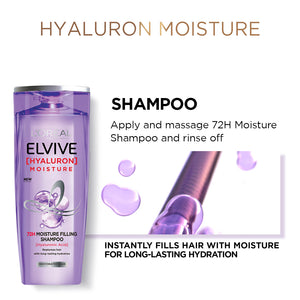 LOREAL ELVIVE HYALURON MOISTURE SHAMPOO 175ML is a professional-grade shampoo designed to deeply hydrate hair. Formulated with Hyaluronic Acid, it helps to lock in moisture, restore softness, and make hair up to 8x shinier. Safe for all hair types, it leaves hair feeling clean, healthy, and luminous.