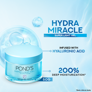 What It Is: POND’S Super Light Gel is a lightweight and non-oily gel formula which is infused with Hyaluronic Acid and Vitamin E for a water fresh glow. It instantly absorbs into your skin and leaves it 2x more hydrated.