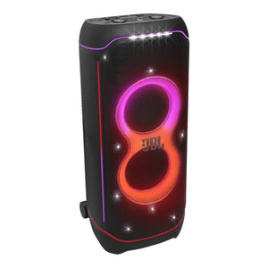 The JBL PartyBox Ultimate is a powerful party speaker designed for immersive sound and dynamic lighting effects. With JBL Original Pro Sound and Dolby Atmos, it delivers deep bass and crystal-clear audio. Its splashproof design and sturdy wheels ensure easy portability for any event.