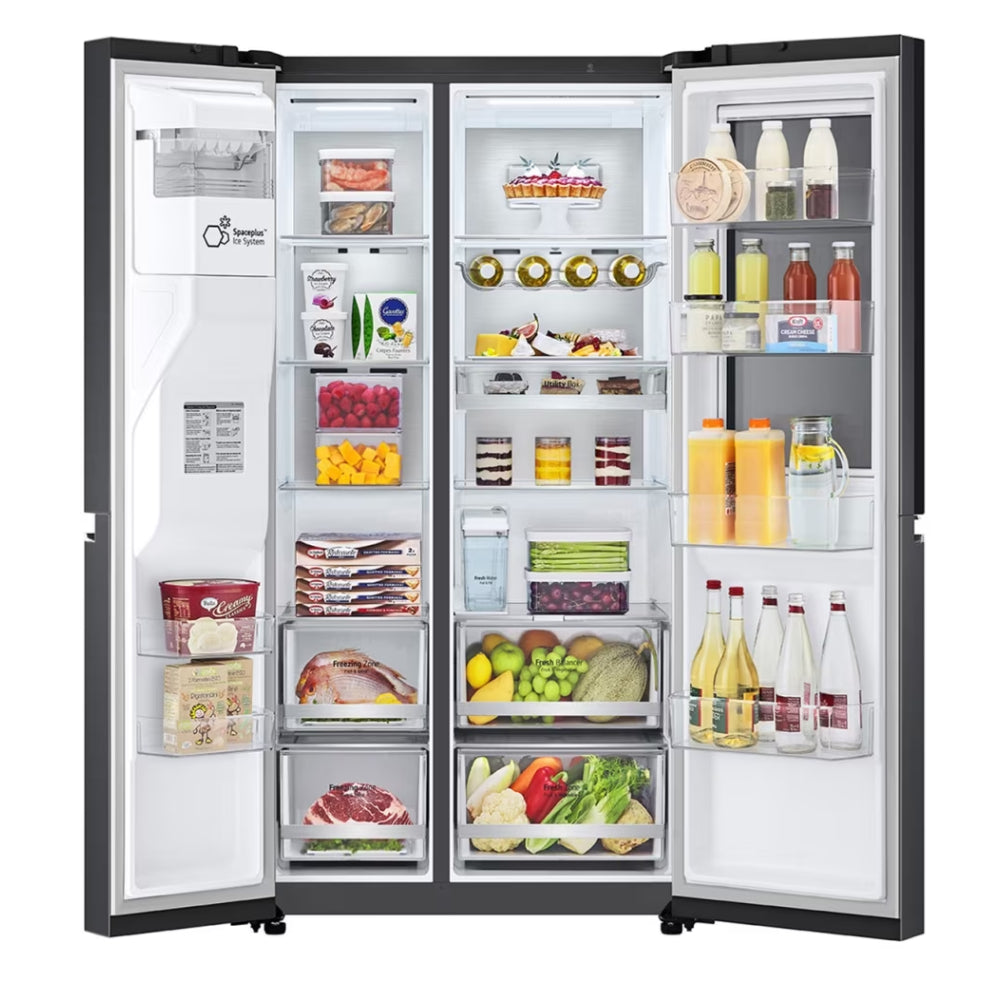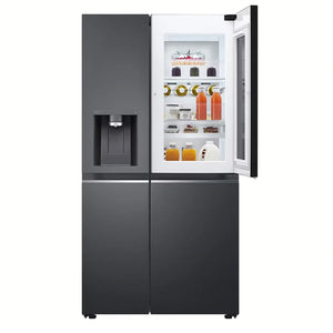 The LG Side-by-Side InstaView™ Refrigerator GR-X267CQEW offers a spacious 617-liter capacity with advanced cooling technology. Its InstaView™ feature allows you to see inside without opening the door, and UVnano™ technology keeps your water dispenser clean.