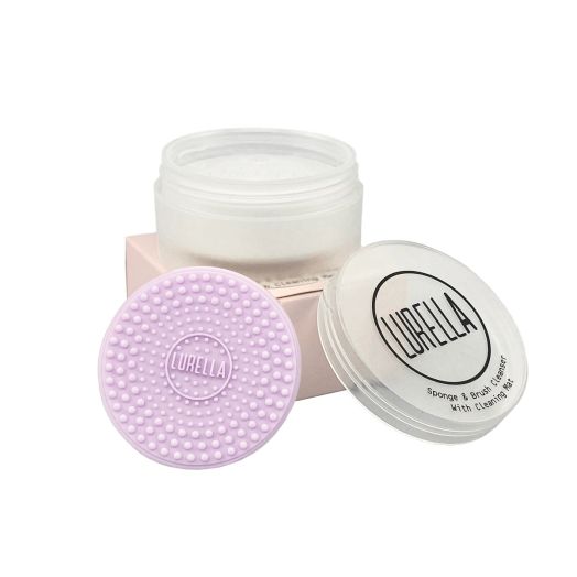 This duo removes buildup to deep clean your makeup brushes and sponges. It includes a cleansing soap and scrubbing mat that comes in a travel-friendly case! This duo removes buildup to deep clean your makeup brushes and sponges. It includes a cleansing soap and scrubbing mat that comes in a travel-friendly case!