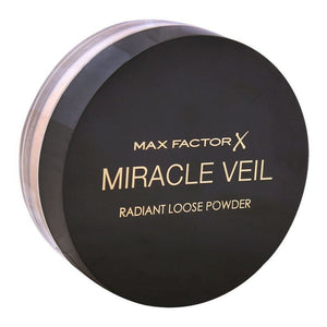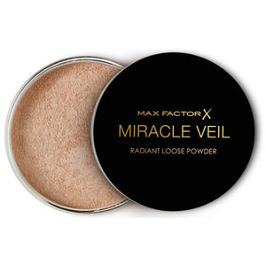 Max Factor Miracle Veil is a radiant loose powder that sets make-up for all-day radiant wear. Silky-light feel and colorless on skin. This illuminating powder is designed to help control oily-looking shine, without making skin look flat or dull. The formula feels lightweight and visibly improves skin texture without settling into fine lines and wrinkles. Its complexion-perfecting coverage minimizes the appearance of pores, fine lines, and wrinkles for a younger look. The non-drying powder feels comfortable all day and skin never looks dry or chalky.