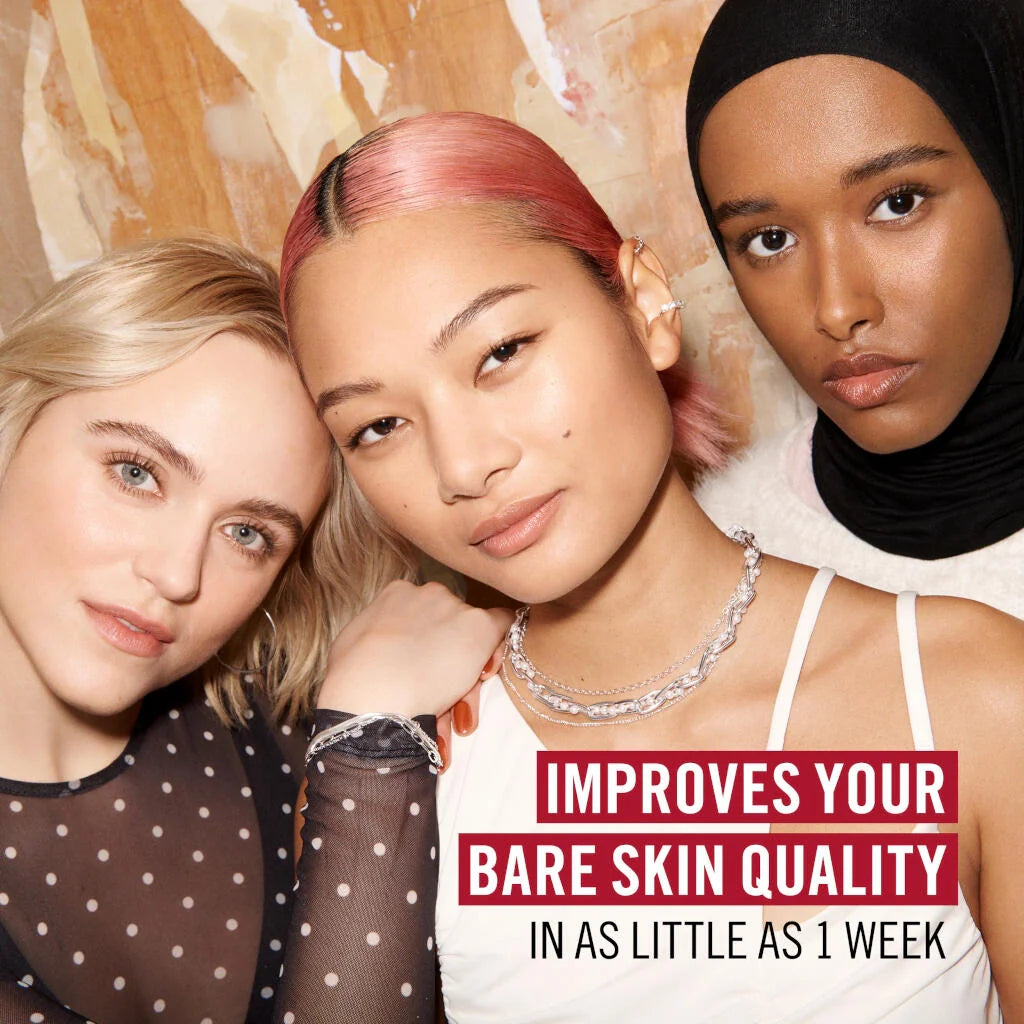 • Buildable formula with a radiant finish infused with caffeine to wake up skin, vitamin C to brighten and even skin tone, and 2% niacinamide for firmer-looking skin