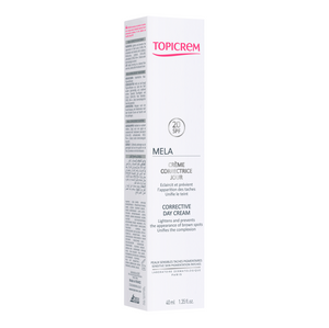 Topicrem MELA Corrective Day Cream SPF20 is a moisturizer with sun protection that corrects hyperpigmentation. First and foremost, it reduces the noticeability of existing dark spots while also preventing the emergence of new ones. Additionally, it makes the complexion look overall more even and boosts radiance over time.