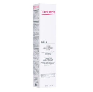 Apply a generous layer of Topicrem MELA Corrective Night Cream in the evening, as the last step of the routine, after thoroughly cleansing and applying specific treatments.