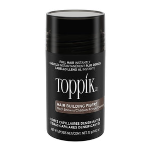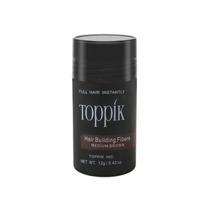 Toppik Hair Building Fibers, made of colored keratin protein, blend undetectably with existing hair strands to instantly create the appearance of naturally thick, full hair.