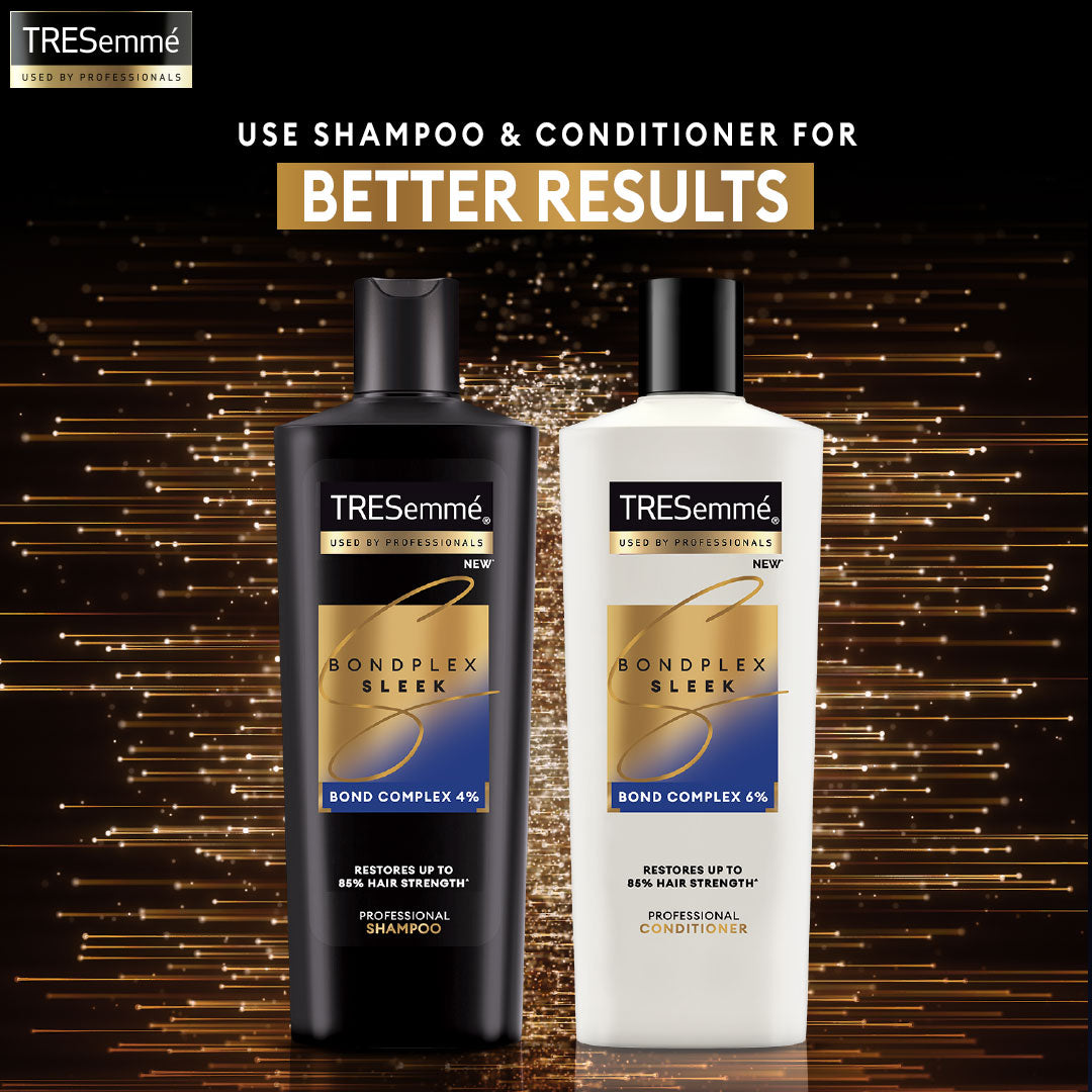 Step 3: Treat your hair with TRESemme Bond Plex Sleek Conditioner, which will enhance your hair quality.