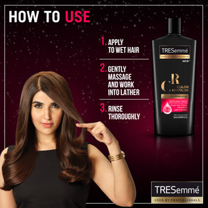 Tresemme Shampoo Colour Revitalize - 170ML is a colour-protecting solution that revitalises and promotes vibrant, long-lasting colour. This advanced shampoo helps to reduce colour fading by up to 80%, whilst adding shine to hair. It is enriched with green tea extract and sunflower seed oil to leave hair healthy-looking and protected.