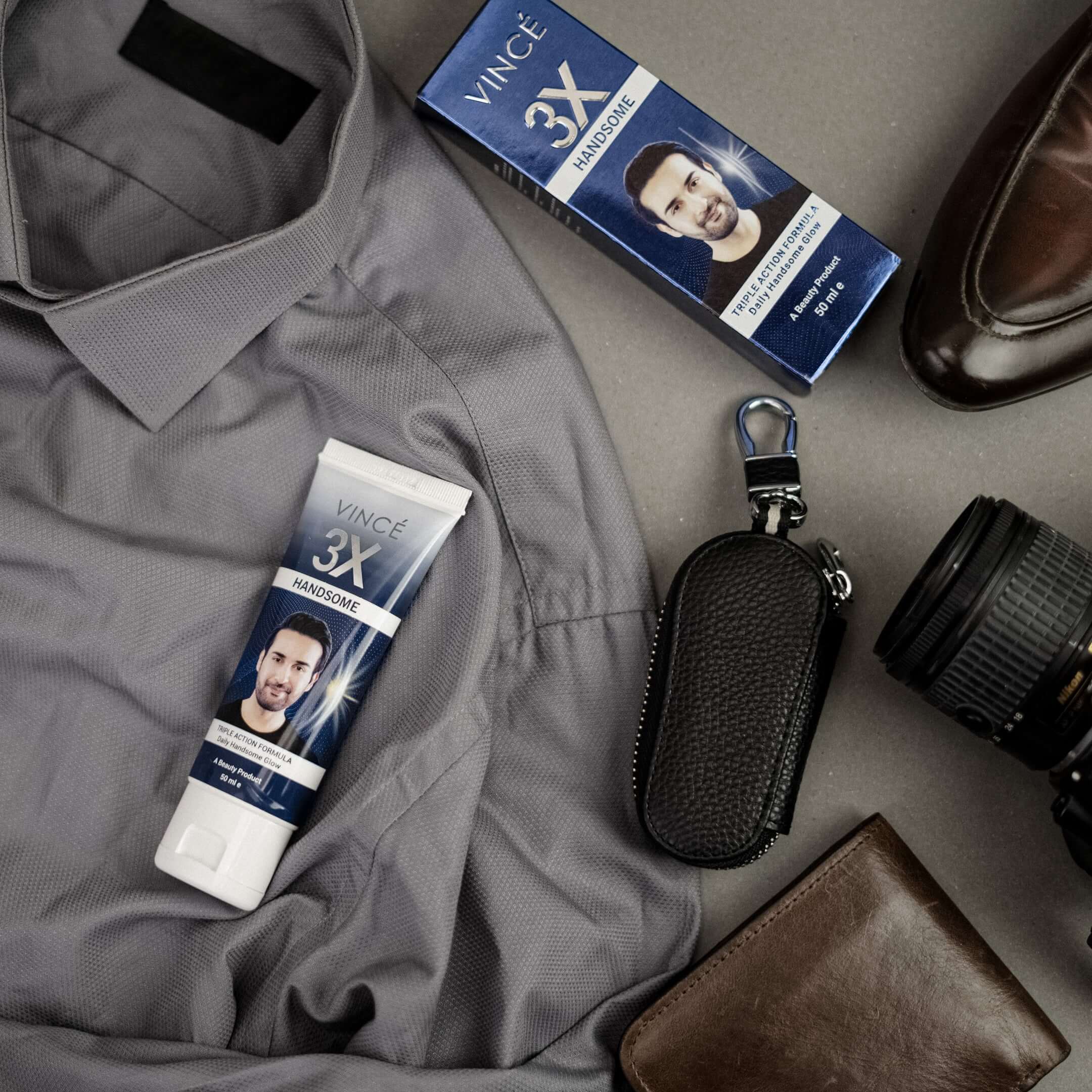 Vince 3X Handsome is specially formulated for men’s skin to give them a boost of glow every day. This daily grooming cream helps to make your skin look instantly brighter, radiant, and glowing. The high-concentration of Vitamin B3 in it helps to reduce blemishes, dullness, and brightens dark skin cells. Its non-greasy texture, penetrates into the skin and gives matte, oil-free, refreshed appearance, also assists to protect your skin from UV rays and pollution.