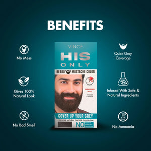 VINCÉ Exceptional Ammonia-Free Color is an advanced Formula, infused with a unique blend of the finest ingredients that is effective even on the coarsest facial hair. It helps to cover grey without leaving any residue on the skin while giving a natural look. It keeps your beard and mustache looking fuller, vibrant, and captivating. Vince His Only Beard & Mustache Color offers all the benefits in one pack that makes it unique. It is an advanced ammonia-free formula which is easy to use, gives 100% natural look, causes no mess, no irritation, and do not have any bad smell.