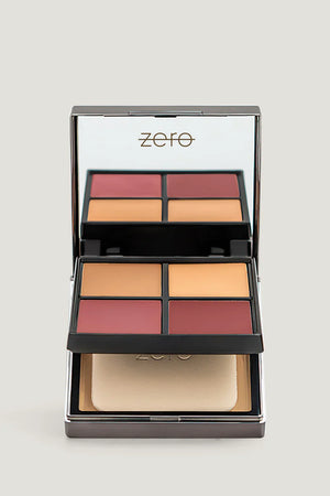 ZERO Makeup Face Perfecting Palette is an all-in-one solution to achieve flawless-looking makeup. Made from the finest ingredients, the palette contains concealer, blending base, powder, blush, and lipstick.