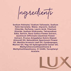 Indulge in the luxurious experience of our Lux - Rose Glow Soap Bar Pink. Made with real rose extract, this soap bar not only cleanses your skin, but also leaves it with a radiant and glowing complexion. Experience the benefits of rose for your skin with every use.
