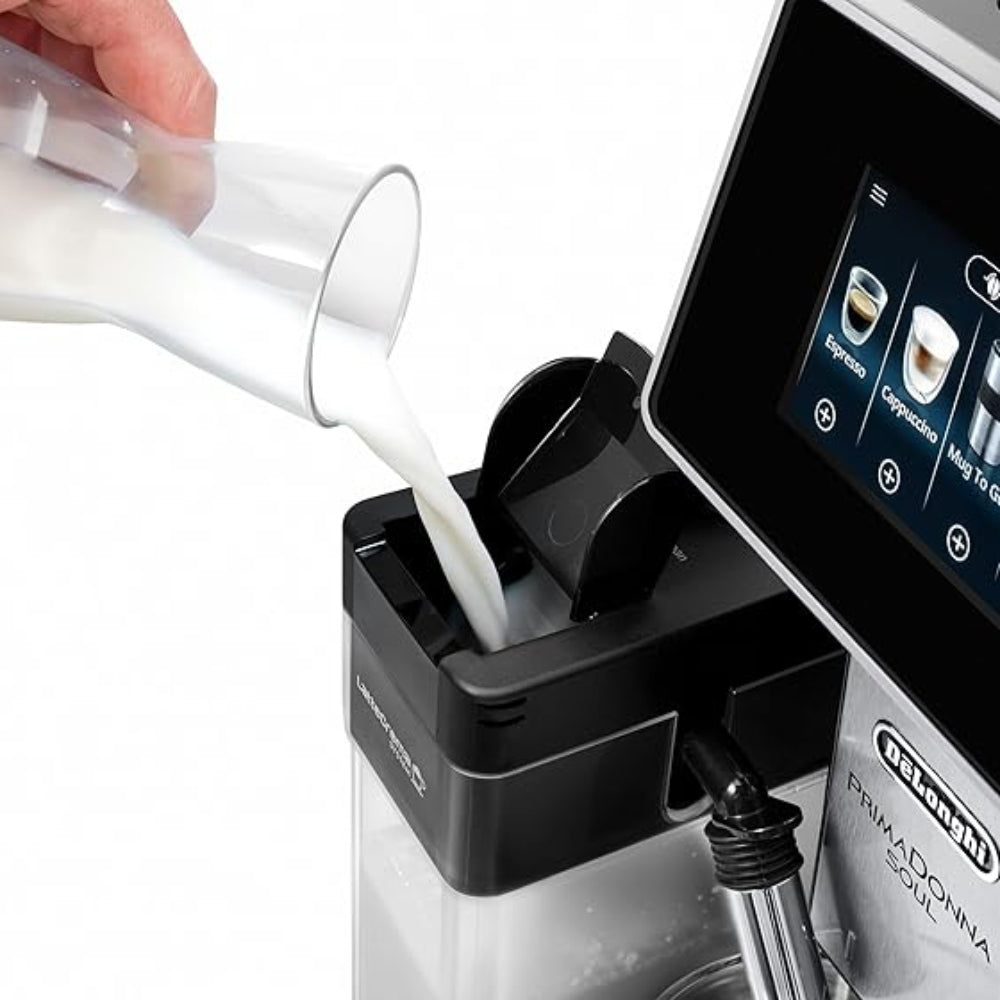 The PrimaDonna Soul ECAM610.75.MB is a premium, fully automatic coffee maker by De’Longhi. It offers a wide variety of coffee and milk-based beverages with one-touch convenience, ensuring fresh, barista-quality drinks every time. Its advanced features and elegant design make it a standout addition to any kitchen.