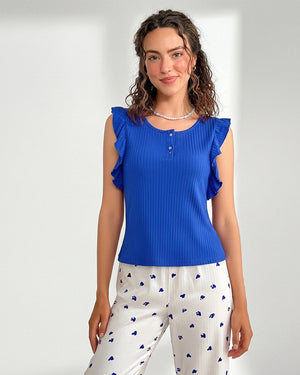 Cotton PJ Set - Heart Ease - Blue