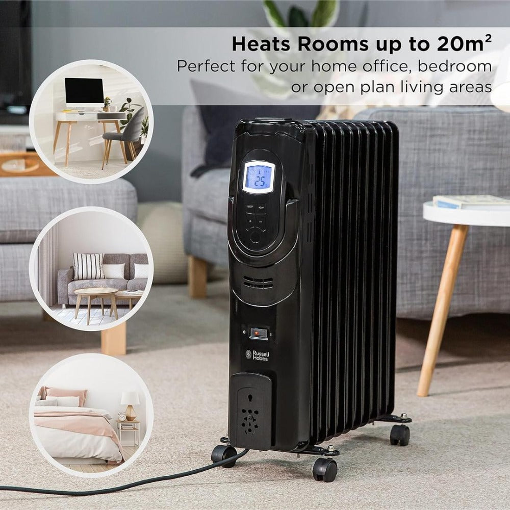 The Russell Hobbs RHOFR5003B is a powerful and efficient oil-filled radiator designed to provide consistent heating. Its sleek design and advanced features make it ideal for warming up any room in your home.