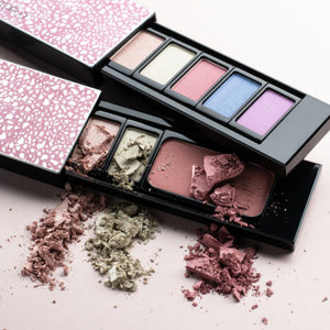 The innovative sliding mechanism can be opened in both directions and can accomodate up to 5 eyeshadows.