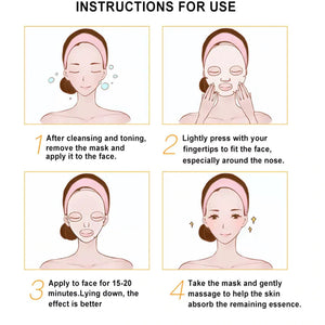 How To Use : Clean skin and remove mask from packaging. There is total 2 layers of face mask, take down the white pearl film, spread the silk mask out and apply carefully onto the face, resting on the face for 15-20 minutes. Take off the mask and gently pat the face. Excess serum can be applied to neck, shoulders and hands. Face sheet to be used only once. Access gel serum in package can also be used as a serum the following days before moisturizer.