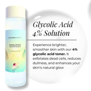 Our Glycolic Acid Toner 4% offers a gentle yet effective exfoliation, making it suitable for all skin types. This toner features a mild concentration of glycolic acid, designed to refresh and renew your complexion without irritation. Ideal for daily use, it helps to remove dead skin cells, clear impurities, and refine skin texture, resulting in a smoother, more radiant appearance.