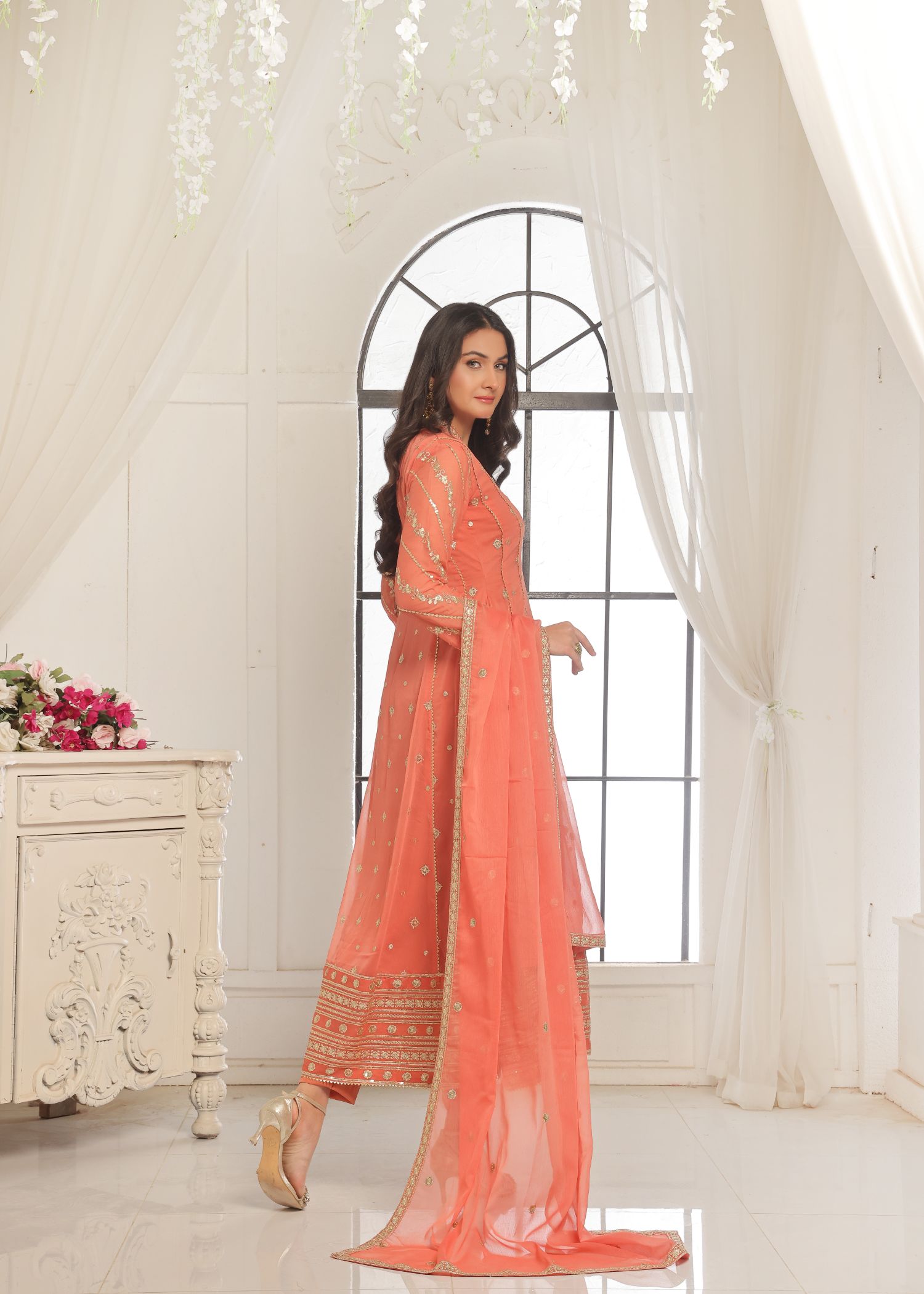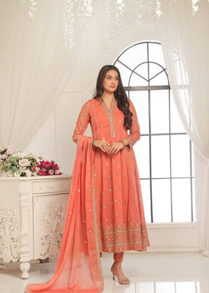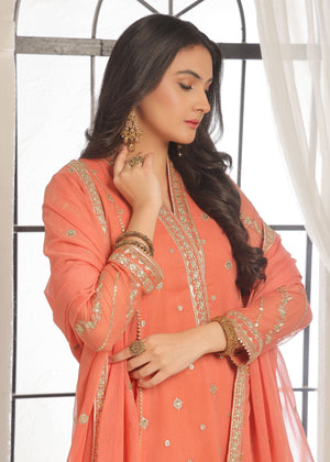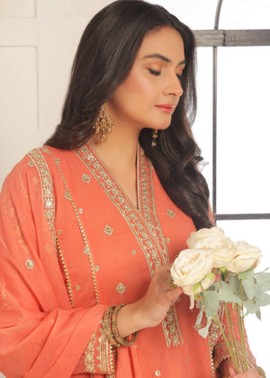 Zarif By Al Harir Stitched 3 Piece Formals Vol-02 Suit-AH008-ZV2-Peach
