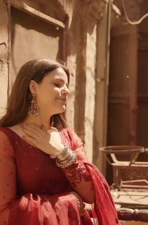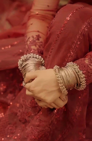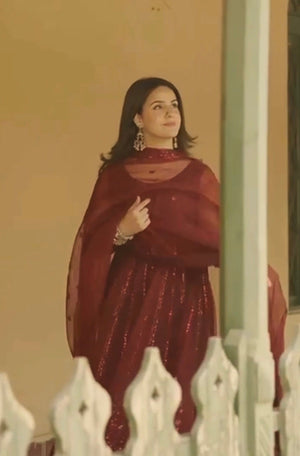 The classic, the modern, the glamorous or the unconventional. Delicately Crafted Deep Maroon Organza Pishwas engraved with intricate details and delicate embroidery work on every panel with an organza dupatta that has exquisite embroidery borders makes it a statement attire for the next festive season.