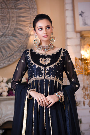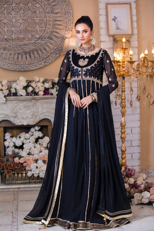 . An Absolute Show Stopper. The 'Mehr-Un-Nisa' Kalidaar Pishwas Is Designed To Give A Slender Waistline An Extra Flairing Kalis For That Unforgetable Twist And Stunning Silhoutte.