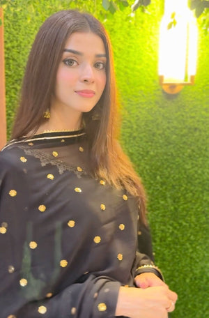 Behold the epitome of elegance, our Embroidered Chiffon Kalidar Frock, a true testament to the fusion of tradition and artistry. This enchanting ensemble is meticulously crafted, with every stitch reflecting the dedication of our skilled artisans. The frock, adorned with intricate embroidery, flows gracefully and comes with an attached inner for a seamless fit and effortless elegance. Completing the ensemble is a stunning dupatta, beautifully complementing the frock with its timeless charm. Prepare to be captivated by the exquisite traditional lace embellishments, reminiscent of a bygone era, adding an enchanting touch to your attire. Step into a world of grace and sophistication, embracing the allure of this uniquely crafted Embroidered Chiffon Kalidar Frock, as you make a lasting impression at any special occasion.