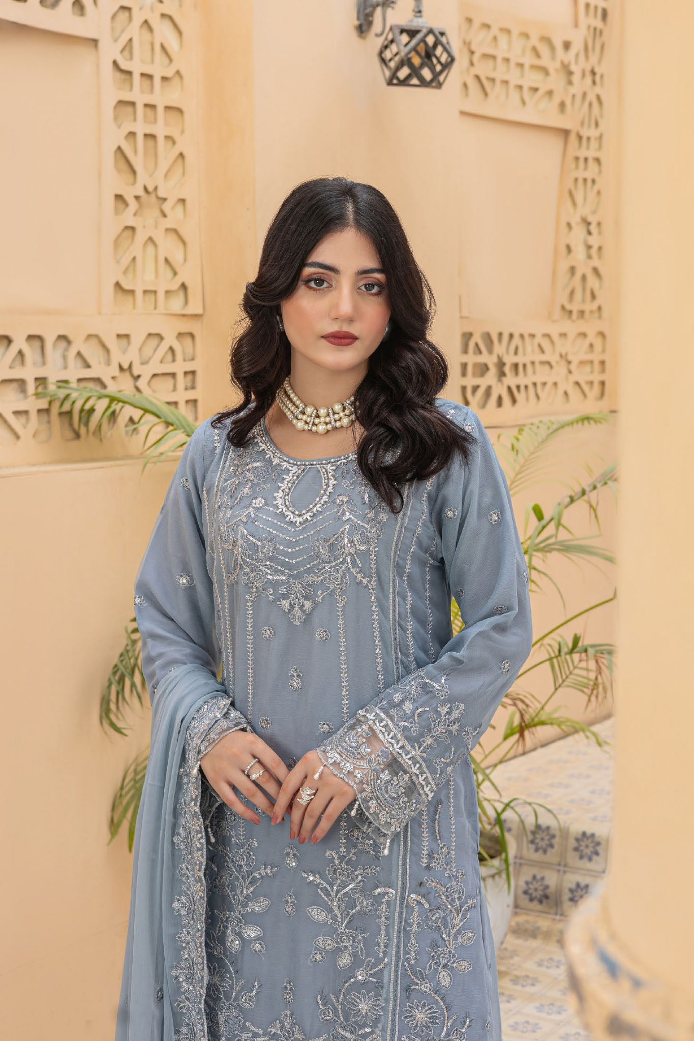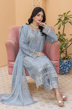 Maya By Azmeerah Stitched 3 Piece Hand Emb Chiffon Suit-05-Lumora