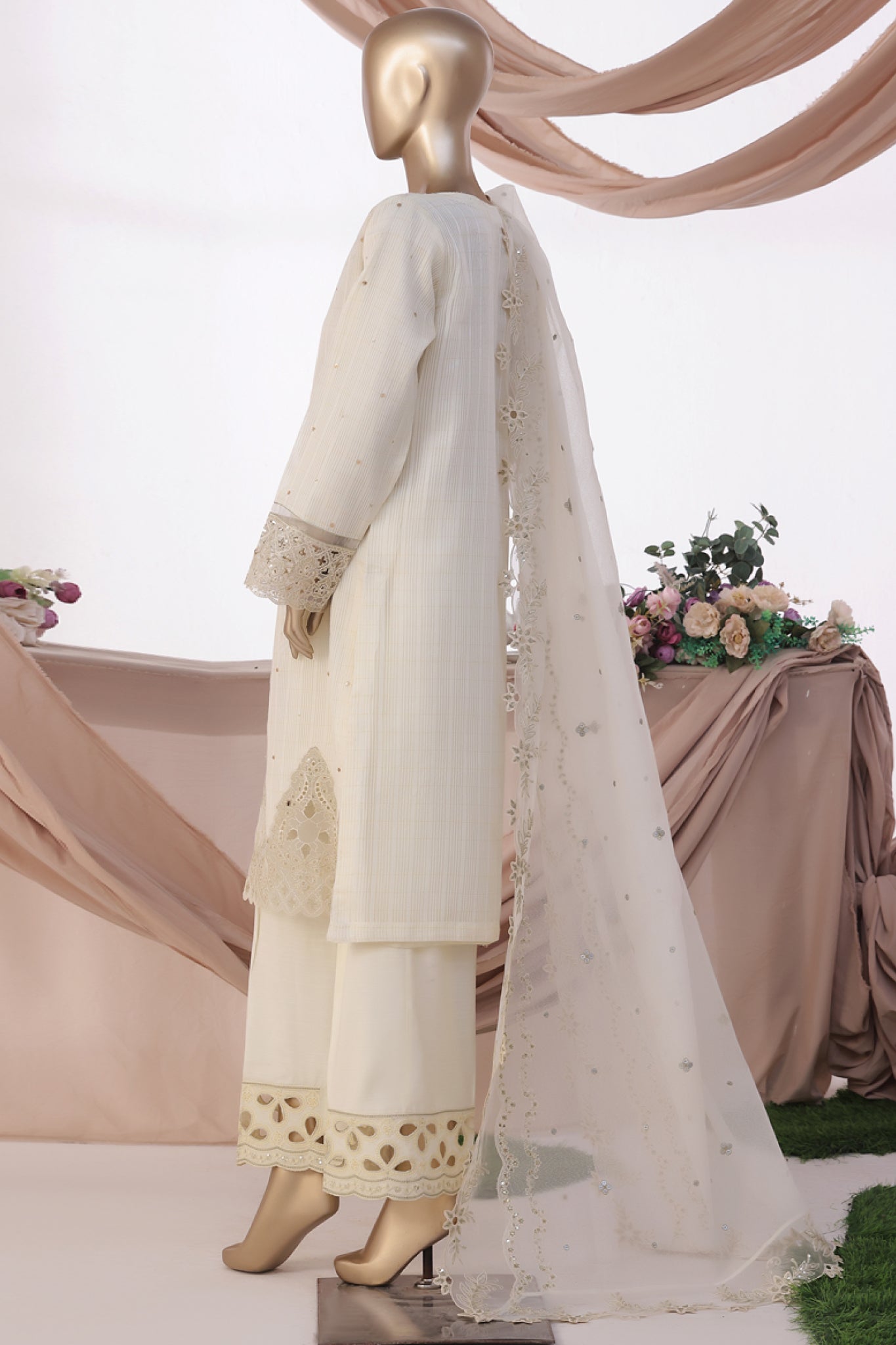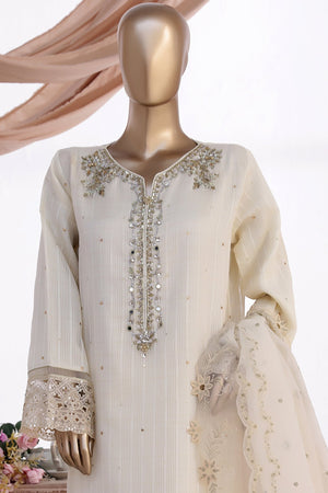 HZ Stitched 3 Piece Luxe Pret Formals Suit-HZK-223-Ivory