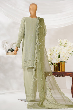Sheer By HZ Stitched 3 Piece Emb Khaddi Net Formals Suit-HZK-225-Green