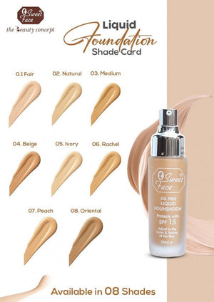 Achieve a natural, flawless complexion with the Sweet Face Oil Free Liquid Foundation. This full-coverage, oil-free formula provides excellent coverage while controlling shine, ensuring your skin looks fresh and matte throughout the day.