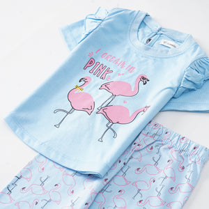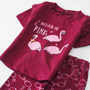 The top features a classic cut with short sleeves and a round neckline for easy wear and movement. Paired with matching bottoms, complete with an elastic waistband for a snug fit that allows for unrestricted play.