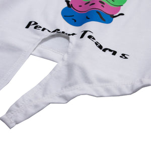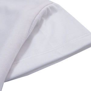 This shirt features a round neckline and short sleeves, with a graphic print on its body.