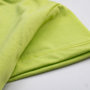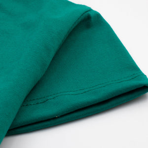 This shirt features a round neckline and short sleeves, with a graphic print on its body.