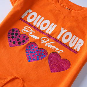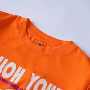 Introducing our delightful Girls' Printed T-shirt, a charming addition to any young fashionista's wardrobe! Crafted from a premium cotton jersey blend fabric, this tee ensures both comfort and durability for all-day wear.