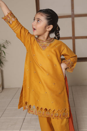 Nat Khat Guriya By Shanzey Stitched 3 Piece Cotton Suit-SHK-5602-Mustard