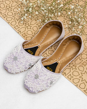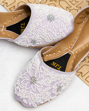 Lavender Whispers brings a touch of floral fantasy with its soft lavender base and intricate beadwork. This pastel pair is designed to evoke the delicate beauty of a lavender field in full bloom, adding a serene charm to your wardrobe.