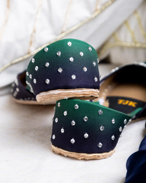 A lush transition from forest green to a deep black, Sabzmehr is a fusion of nature?s serenity and nighttime mystery. Dotted with delicate embellishments, it?s perfect for those who seek grace in understated luxury.