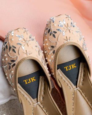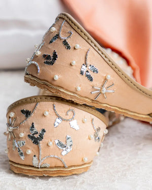 Sunehri Saawan brings together a nude peach base with silver and white embellishments inspired by rain-kissed florals. Understated yet dazzling, it?s perfect for day-to-night events, offering an elegant complement to pastel and neutral outfits.