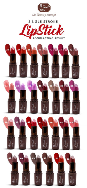 Elevate your pout with Sweet Face Glamorous Lip Stick. Offering a striking range of shades, this lipstick provides a smooth, even application with a touch of sophistication and allure.