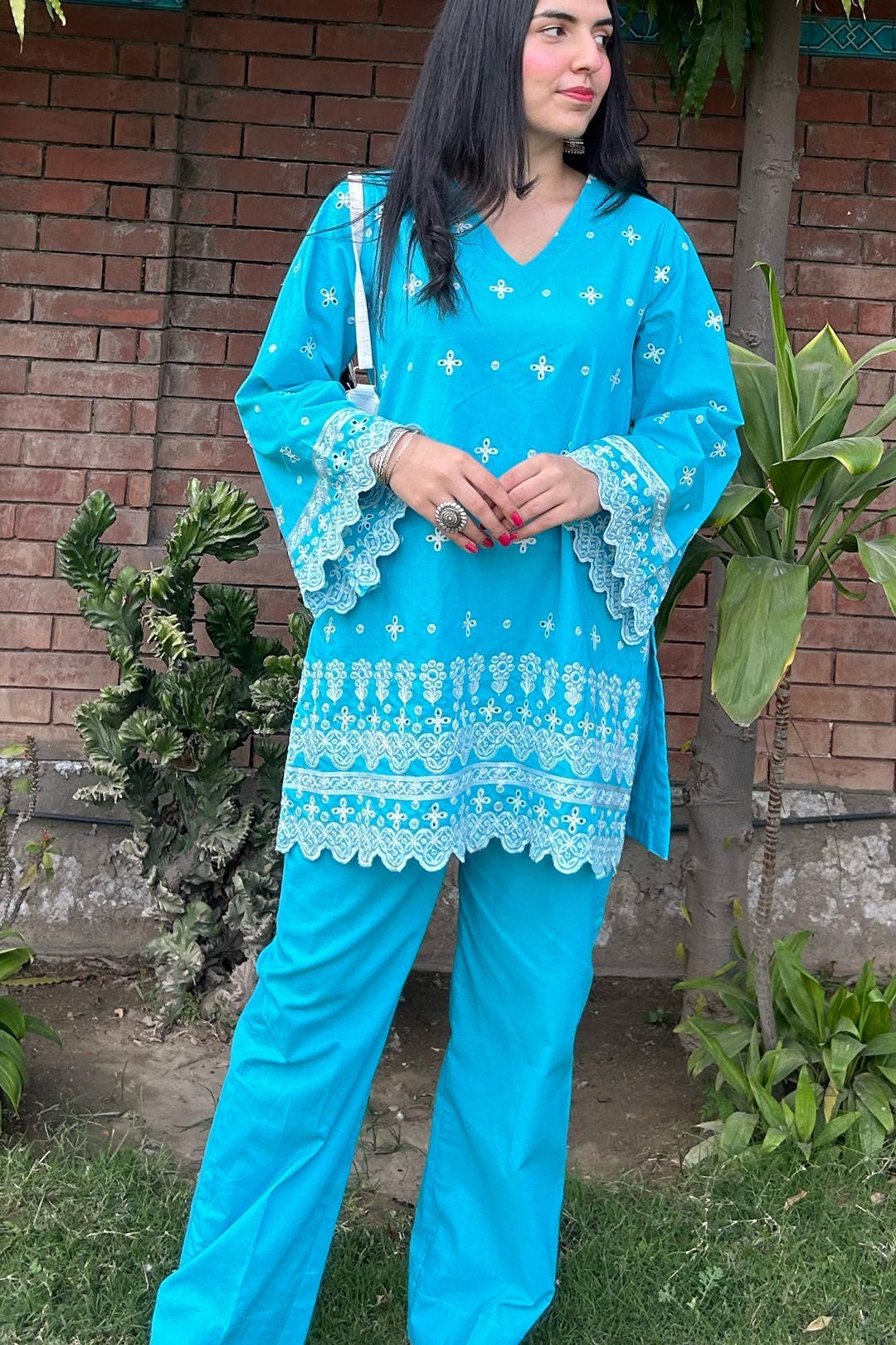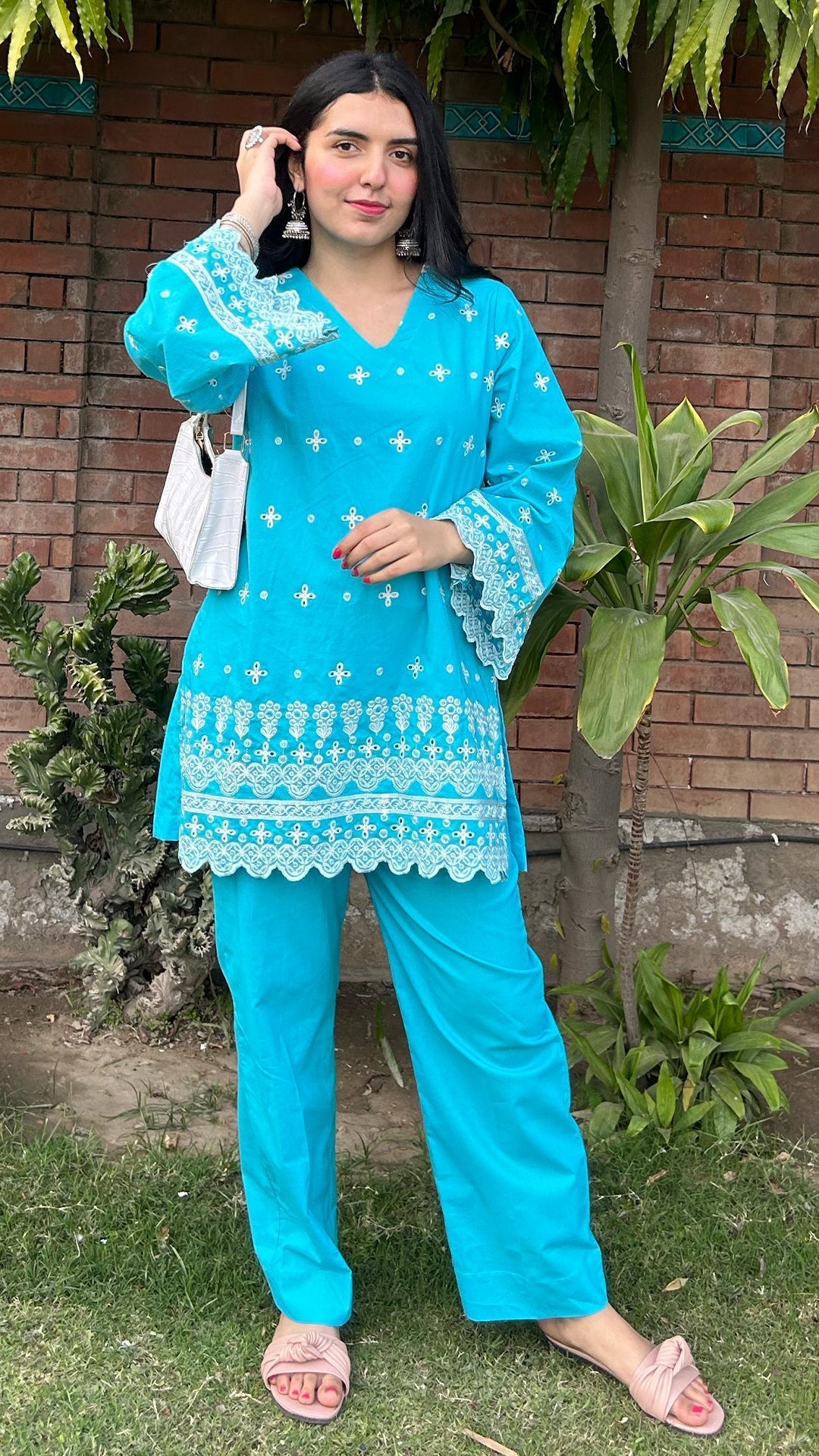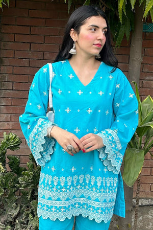Urban Cut 2 Piece Cotton Chikankaari Embroidred Co- Ord Set